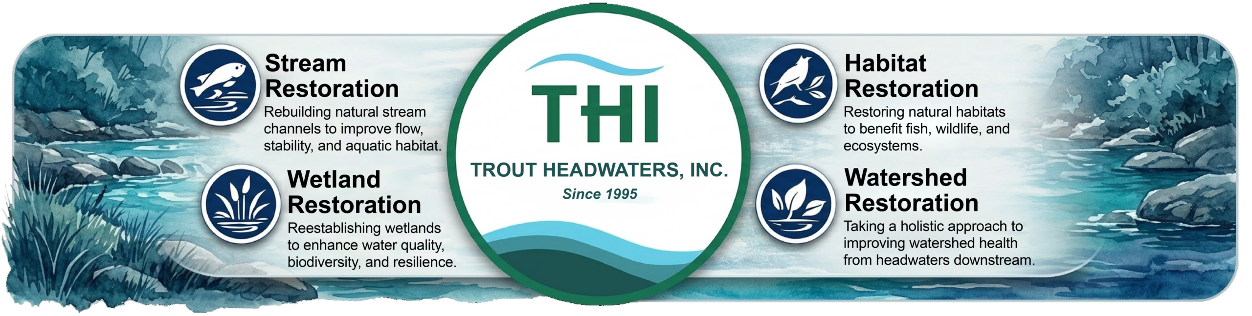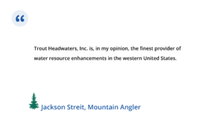 At Trout Headwaters Inc (THI) we have built and maintained a "customer-first" philosophy for more than 28 years. Our guiding principle is to remain customer-centric. Thanks to our clients, we have provided the “Johnny Willowseed” approach to ecological restoration services in some 38 states for private individuals, family trusts, businesses, non-profits and government.